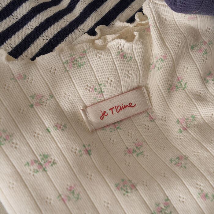 優しい色味の花柄で主役としてもインナーとしても活躍する優秀Tシャツです♡